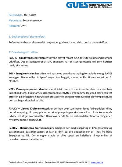 Referat af bestyrelsesmøde i GUES den 25. September 2025