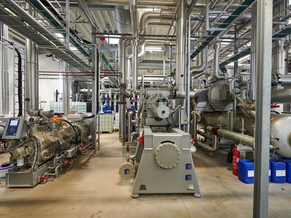 Om vinteren, hvor varmebehovet er stort, anvendes varmen ved at køle lageret med varmepumper.